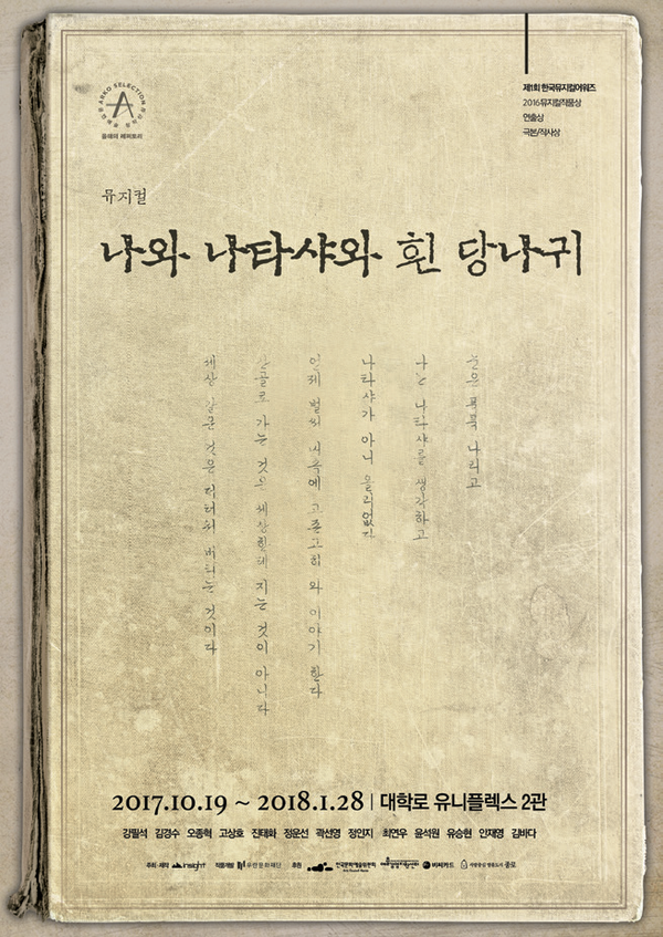 [아츠앤컬쳐] 뮤지컬 <나와 나타샤와 흰 당나귀>는 그간 위인들의 일대기를 그려낸 작품들과는 달리 사랑했던 시인 ‘백석’을 잊지 못해 헤어지던 순간을 반복하며 사는 기생 ‘자야’의 시선으로 그들의 사랑이야기를 풀어나간다. 백석의 시를 가사와 대사에 담아 아름다운 피아노 선율과 함께 감각적인 무대를 그려내며, 초연 당시 객석 점유율 95%, 인터파크 평점 9.3을 기록하였고, 제1회 한국뮤지컬어워즈에서 ‘2016 뮤지컬 작품상’ ‘극본, 작사상’ ‘연출상’을 수상하며 성공적인 초연을 마무리하였다.