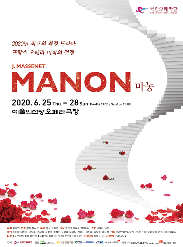 국립오페라단은 6월 25일(목)부터 28일(일)까지 예술의전당 오페라극장에서 프랑스 대표 작곡가 마스네의 대표작 <마농>을 선보인다. 프랑스 소설가 아베 프레보의 자서전적 작품 「기사 데 그리외와 마농 레스코의 이야기」를 원작으로 하는 오페라 <마농>은 귀족 출신의 데 그리외 기사와 평민 출신의 소녀 마농의 격정적인 만남과 사랑을 다룬다. 사치와 향락, 화려한 삶을 동경하고 오직 사랑과 유희만을 끊임없이 욕망하는 젊고 매혹적인 마농, 그녀의 짧고 뜨거웠던 삶과 변화무쌍한 심리적 갈등이 작곡가 마스네 특유의 섬세하면서도 화려하고 관능적인 음악과 절묘하게 어우러진다. 특히 이번 <마농>은 2018년 국립오페라단의 새 프로덕션으로 화제를 모았던 작품이다. 세계 오페라 무대를 리드하고 있는 정상급 제작진과 출연진을 한 자리에 모아 세련되고 감각적인 뉘앙스가 물씬 풍기는 프랑스 오페라 미학의 절정을 선사했다는 평가를 받은 작품이다. 고난도의 테크닉과 드라마틱한 성량, 다양한 색깔의 목소리로 관객들을 사로잡을 열정의 주인공 마농 역은 대한민국 대표 소프라노를 넘어 세계무대가 주목하고 있는 손지혜와 엄진희가 맡아 열연한다. 특히 소프라노 손지혜는 2017년 국립오페라단 야외오페라 <동백꽃아가씨-라 트라비아타>에서 비올레타 역, 2018년 <마농>에서 마농 역을 맡아 호연을 펼친 바 있다. 마농과 불같은 사랑에 빠져드는 순수한 영혼의 기사 데 그리외 역은 빈 폴크스오퍼의 주역으로 활동한 바 있으며 2018년 국립오페라단 <마농>에서 같은 역할로 두각을 나타낸 테너 국윤종과 라 스칼라 극장이 발굴한 미성의 테너로 2016년 국립오페라단 <루살카> 국내 초연 공연에서 왕자 역으로 열연한 권재희가 맡는다. 레스코 역의 바리톤 공병우, 데 그리외 백작 역의 베이스 김철준을 비롯하여 정상급 성악가들이 한 무대에 올라 감동의 순간을 선사한다.