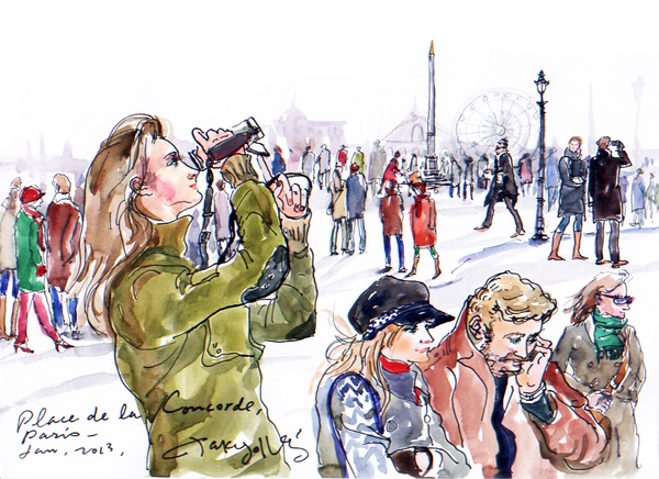 새로운 소망과 각자의 꿈을 안고 사람들은 광장으로 몰려든다. 붉게 떠오르는 태양은 동방에도 중동에도 유럽의 땅 위에도 똑같이 밝게 드리운다. 세월은 과거로 밀려가고 조용하나 멈추지 않는 센 강의 물결처럼, 새해를 맞아, 파리지앵들은 오늘도 변함없이 자신의 삶을 향유하고 기쁨을 가슴에 새긴 채 이 광장의 공기를 들이마시며 오늘이란 현재를 즐기는 것이다.