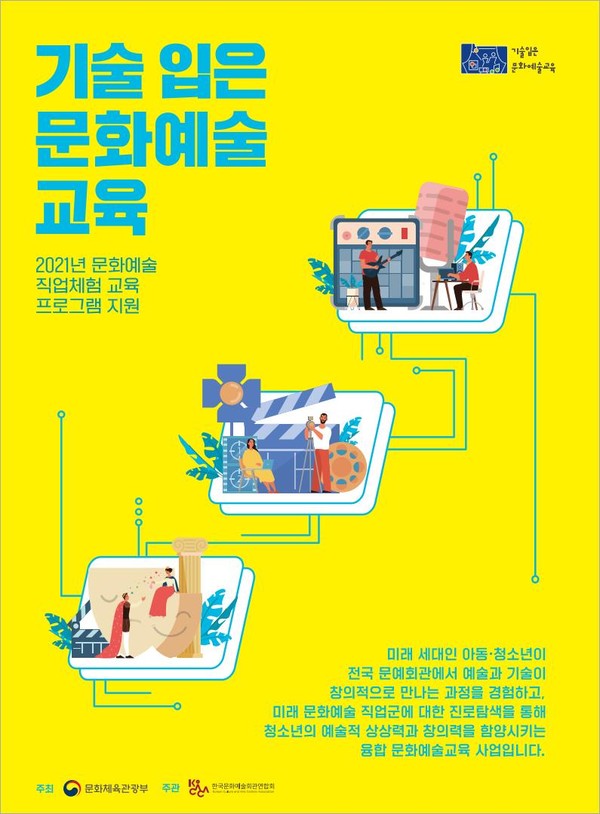 [아츠앤컬쳐] 문화체육관광부가 주최하고 한국문화예술회관연합회(이하 코카카)가 주관하는 ‘문화예술 직업체험 교육프로그램 지원’사업(이하 기술 입은 문화예술교육)이 4차 산업혁명에 발맞춘 예술・기술 융복합 청소년 교육을 위해 전국 31개 문예회관에서 본격 시작된다.