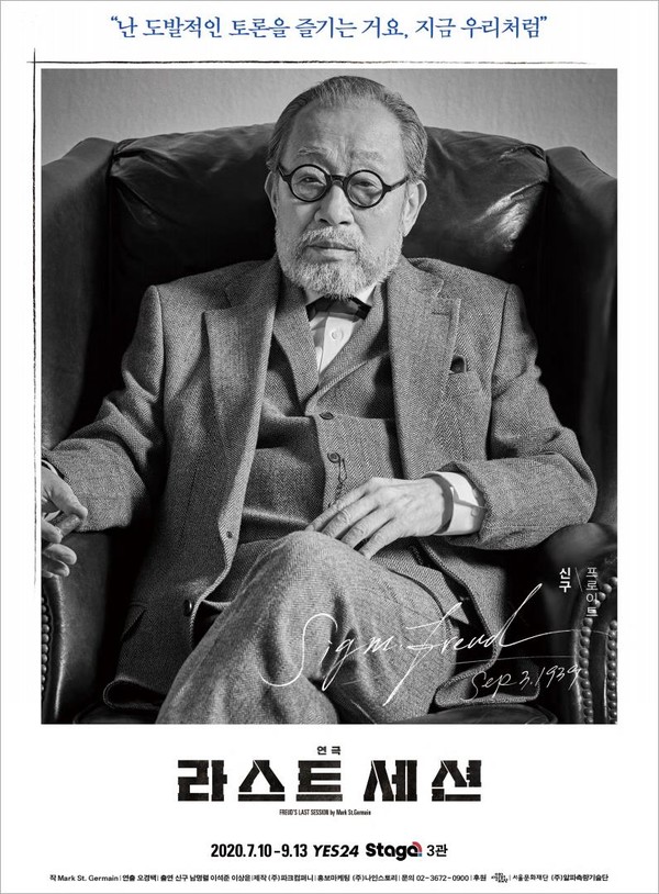[아츠앤컬쳐] 7월 10일(금) 한국 초연의 막을 올리는 연극 <라스트 세션(Freud's Last Session)>이 예스24 스테이지 3관에 오를 예정이다. 미국 극작가 세인트 저메인의 [루이스 vs 프로이트]에서 영감을 얻었다고 한다. 뉴욕 오프 브로드웨이에서 2년간 775회나 공연하면서 비평가들과 관객들의 호평을 받은 작품이다. 국내 초연이지만 '뉴욕 타임스'의 "예리하고 살아있는 대화들, 대본은 빈틈없고 유머로 가득 차 있다. 멋진 토론을 기대한 관객을 만족시킨다."라는 평을 받은만큼 기대가 크다.