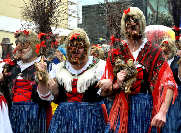 The “Feldkircher Fastnachtsumzug” (carnival procession in Feldkirch, the most far westen part of Austria, closed to Swizerland) features people in colorful costumes coming out on the street and welcoming the spring with loud singing. It goes without saying that this is not only a festival of greeting but of scaring away. In this case it is done using torches which are lit on the entire mountain.