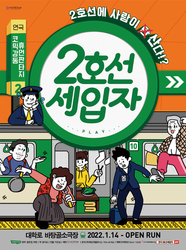 연극 <2호선세입자>는 평점 9.9점의 동명의 인기 웹툰을 원작으로 한 연극으로, ‘2호선에 사람이 산다’는 기발한 발상 아래 마치 실제 지하철을 가져다 놓은 듯한 생생한 무대와 배우들의 뛰어난 코믹연기로 관객들에게 큰 웃음과 감동을 선사했던 작품이다.