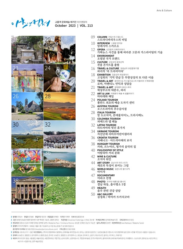 [아츠앤컬쳐] 관련기사 212호 목차 211호 목차 210호 목차 214호 목차 215호 목차 216호 목차 키워드 #아츠앤컬쳐 #artsnculture 아츠앤컬쳐 master@artsnculture.com 다른기사 보기 저작권자 © Arts & Culture 무단전재 및 재배포 금지 당신만 안 본 뉴스 강재희 개인전 'Garden In Fall' 2025 예술가의집 & 꽃피는몸 프로젝트 공동기획 프로그램 2025 국립오페라단 정기공연 Ⅳ '트리스탄과 이졸데' ‘2026년 문예회관 특성화 지원 사업’ 확대 개편 예미 신간, '바다는 작은 물을 가리지 않는다' 강재희 개인전 'Garden In Fall' 댓글삭제 삭제한 댓글은 다시 복구할 수 없습니다. 그래도 삭제하시겠습니까? 비밀번호 닫기 기사 댓글 0 댓글 접기 로그인 후 이용 가능합니다. 댓글 내용입력 비회원 로그인 이름 비밀번호 댓글 내용입력 댓글쓰기 계정을 선택하시면 로그인·계정인증을 통해 댓글을 남기실 수 있습니다. 회원 로그인 비회원 글쓰기 이름 비밀번호 자동등록방지 로그인 옵션 창닫기 주요기사 예미 신간, '바다는 작은 물을 가리지 않는다' ‘2026년 문예회관 특성화 지원 사업’ 확대 개편 2025 국립오페라단 정기공연 Ⅳ '트리스탄과 이졸데' 강재희 개인전 'Garden In Fall' 2025 예술가의집 & 꽃피는몸 프로젝트 공동기획 프로그램 호두까기 인형: 해설이 있는 명품 발레