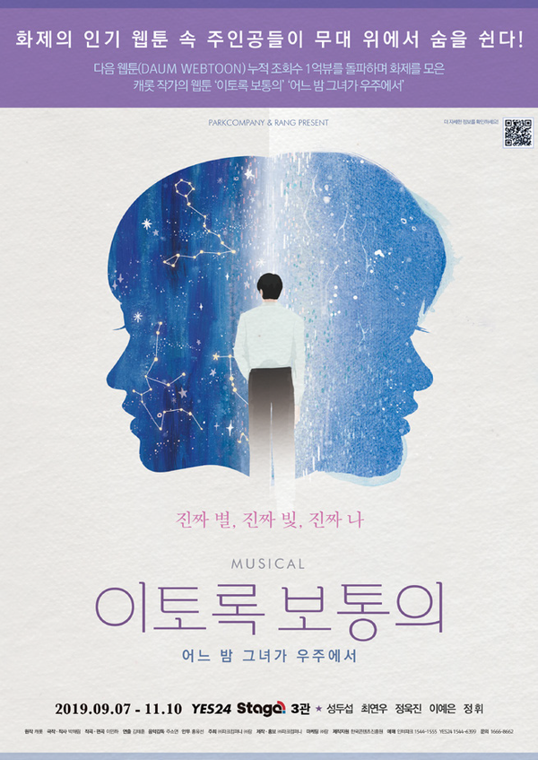 원작 <이토록 보통의>는 인기 웹툰 작가인 캐롯의 작품으로, 다음 웹툰(DAUM WEBTOON) 누적조회수 1억 뷰를 돌파한 화제작이다. 옴니버스로 구성 된 원작의 에피소드 중 두 번째 단편작인 ‘어느 밤 그녀가 우주에서’가 창작 뮤지컬로 재탄생 되었다.