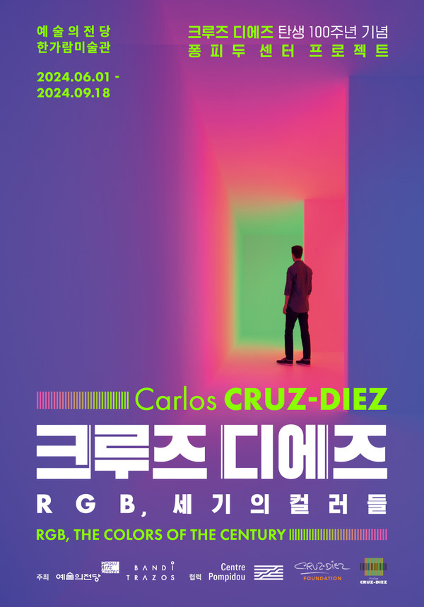 [아츠앤컬쳐] 예술의전당(사장 장형준)과 반디트라소 라틴커뮤니케이션(대표 안진옥)은 《크루즈 디에즈 - RGB, 세기의 컬러들(Cruz-Diez - RGB, The Colors of the Century)》를 한가람미술관에서 개최한다. 빛과 색채의 거장, 카를로스 크루즈 디에즈(Carlos Cruz-Diez, 1923-2019)의 탄생 100주년을 기념하여 크루즈 디에즈 재단이 작가의 고향인 베네수엘라 카라카스를 시작으로 프랑스 파리, 미국 뉴욕, 휴스턴, 플로리다, 스페인 말라가 등 세계 각 도시에서 전시회를 이어가고 있다.