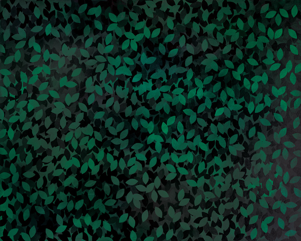 이번 개인전 <숲의 기억>에서 2015년부터 시작된 나뭇잎 시리즈는 간결함과 참신하면서도 산뜻한 아름다움이 돋보였다. ‘푸른 잎(100x80.3cm, 캔버스에 아크릴, 2019)’에서는 빛의 신비로움, 자연과의 대화, 자연에서의 휴식이 잘 드러나있다. ‘Apr. 2nd, 2019(90.9x72.7cm, Oil Bar on Canvas, 2019)’는 셰익스피어의 ‘한여름 밤의 꿈’의 사랑을 찾아 숲을 헤매는 연인들과 요정이 연상되는 연극적이면서도 서정적인 분위기를 연출한 추상작품이다. 전체적으로 사랑스러우며 장난스럽고 그 환상적인 분위기가 시적이며 신비롭기까지 하다.