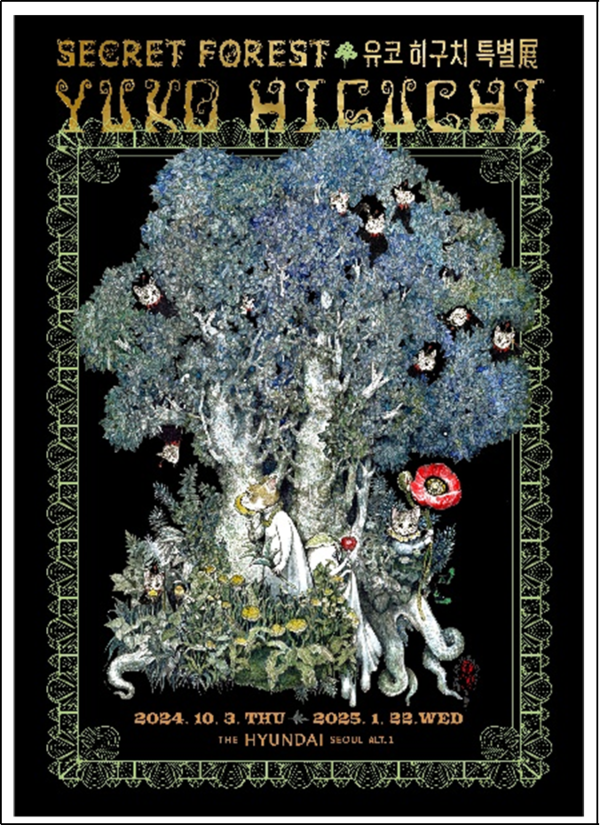 [아츠앤컬쳐] 일본의 유명 아티스트인 유코 히구치(Yuko Higuchi)의 첫 번째 한국 전시, 《유코 히구치 특별전: 비밀의 숲》이 2024년 10월 3일부터 2025년 1월 22일까지 더현대 서울 ALT.1에서 개최된다. 이미 일본에서 열 차례 성공적인 투어 전시를 마친 작가는, 이번 전시를 통해 한국 관객들에게 그동안 보여주지 않았던 신작과 다채로운 작품들을 선보이며 더욱 깊이 있는 판타지의 세계로 초대한다.