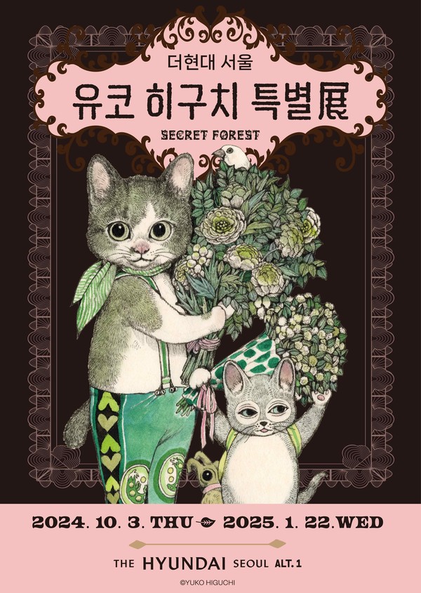 유코 히구치는 고양이, 꽃, 소녀, 나무 등 친숙한 주제를 바탕으로 독특한 상상력을 결합하여 귀여우면서도 기이한 요소가 공존하는 독창적인 판타지 세계를 만들어내며, 이와 동시에 정교하고 섬세한 묘사를 통해 강렬한 인상을 남기는 것이 특징이다. 이번 특별전에서는 작가의 독창적인 세계관이 고스란히 담긴 1000여 점의 작품들을 한국에서 최초로 공개하며, 다양한 오리지널 작품, 드로잉, 포스터, 영화 포스터, 컬래버레이션 작품 등 다채로운 볼거리를 선사한다.