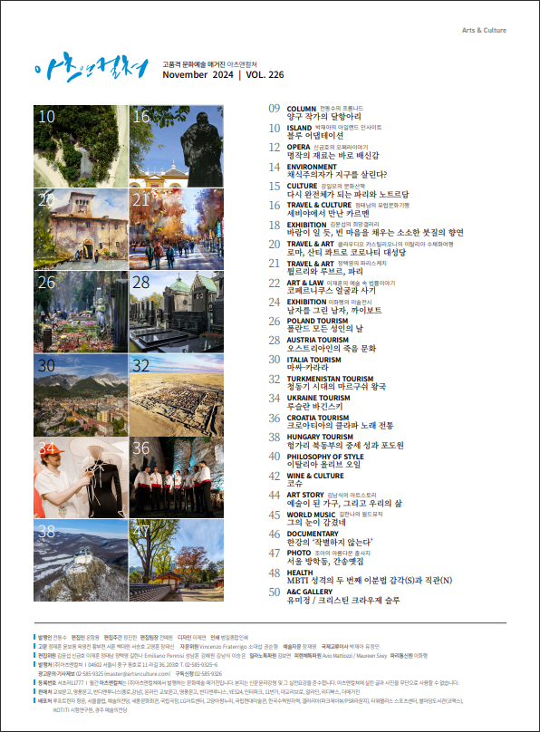 [아츠앤컬쳐] 관련기사 225호 목차 224호 목차 223호 목차 227호 목차 228호 목차 229호 목차 키워드 #아츠앤컬쳐 #artsnculture 아츠앤컬쳐 master@artsnculture.com 다른기사 보기 저작권자 © Arts & Culture 무단전재 및 재배포 금지 당신만 안 본 뉴스 비디오 아트의 아버지 백남준이 크로아티아를 만난 이유 예미 신간, 황인뢰슬갑소설 '장미 이야기' '파라마 파라가' 회고전: 와얀 쿤 아드냐나의 20년에 걸친 선의 탐구 팬텀 포 테너스 ‘마리 로랑생 회고전 : 무지개 위의 춤’ [연극열전10] 여덟 번째 작품 ‘마우스피스(Mouthpiece)’ 전쟁을 바라보는 또 다른 방식 비디오 아트의 아버지 백남준이 크로아티아를 만난 이유 댓글삭제 삭제한 댓글은 다시 복구할 수 없습니다. 그래도 삭제하시겠습니까? 비밀번호 닫기 기사 댓글 0 댓글 접기 로그인 후 이용 가능합니다. 댓글 내용입력 비회원 로그인 이름 비밀번호 댓글 내용입력 댓글쓰기 계정을 선택하시면 로그인·계정인증을 통해 댓글을 남기실 수 있습니다. 회원 로그인 비회원 글쓰기 이름 비밀번호 자동등록방지 로그인 옵션 창닫기 주요기사 'The Aesthetics of Possibility', SAMUEL DE SABOIA Fontane di Piazza San Pietro ‘마리 로랑생 회고전 : 무지개 위의 춤’ 연극 ‘오펀스(Orphans)’ 뮤직드라마 ‘불편한 편의점1’ [연극열전10] 여덟 번째 작품 ‘마우스피스(Mouthpiece)’