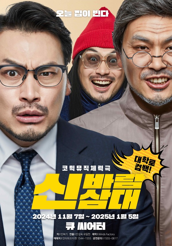 제작은 ‘달빛요정과 소녀’, ‘별난 야유회’, ‘슬픈연극’, ‘바람난 삼대’, ‘연’ 등을 지은 민복기 작품에 민성욱과 유일한 연출이며 남자 역에 민성욱, 유일한, 강지훈, 정승민, 안태영, 김상묵, 강원석, 장한길이 열연하고 여자 역에 윤성경, 김소민, 김민지, 하민, 최아진, 정수미가 열연한다. 연극 ‘신바람 삼대’는 관객들에게 2024년을 마무리하는 연말에 유쾌하고 따뜻한 웃음으로 가득 채워지는 시간을 선사할 것이다.