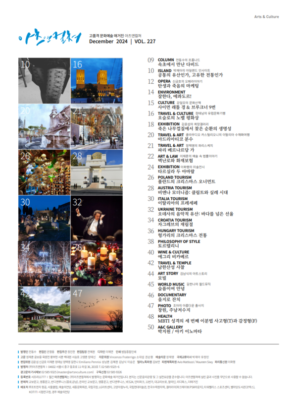 [아츠앤컬쳐] 관련기사 226호 목차 225호 목차 224호 목차 228호 목차 229호 목차 230호 목차 키워드 #아츠앤컬쳐 #artsnculture 아츠앤컬쳐 master@artsnculture.com 다른기사 보기 저작권자 © Arts & Culture 무단전재 및 재배포 금지 당신만 안 본 뉴스 비디오 아트의 아버지 백남준이 크로아티아를 만난 이유 예미 신간, 황인뢰슬갑소설 '장미 이야기' '파라마 파라가' 회고전: 와얀 쿤 아드냐나의 20년에 걸친 선의 탐구 팬텀 포 테너스 ‘마리 로랑생 회고전 : 무지개 위의 춤’ [연극열전10] 여덟 번째 작품 ‘마우스피스(Mouthpiece)’ 전쟁을 바라보는 또 다른 방식 비디오 아트의 아버지 백남준이 크로아티아를 만난 이유 댓글삭제 삭제한 댓글은 다시 복구할 수 없습니다. 그래도 삭제하시겠습니까? 비밀번호 닫기 기사 댓글 0 댓글 접기 로그인 후 이용 가능합니다. 댓글 내용입력 비회원 로그인 이름 비밀번호 댓글 내용입력 댓글쓰기 계정을 선택하시면 로그인·계정인증을 통해 댓글을 남기실 수 있습니다. 회원 로그인 비회원 글쓰기 이름 비밀번호 자동등록방지 로그인 옵션 창닫기 주요기사 'The Aesthetics of Possibility', SAMUEL DE SABOIA Fontane di Piazza San Pietro ‘마리 로랑생 회고전 : 무지개 위의 춤’ 연극 ‘오펀스(Orphans)’ 뮤직드라마 ‘불편한 편의점1’ [연극열전10] 여덟 번째 작품 ‘마우스피스(Mouthpiece)’