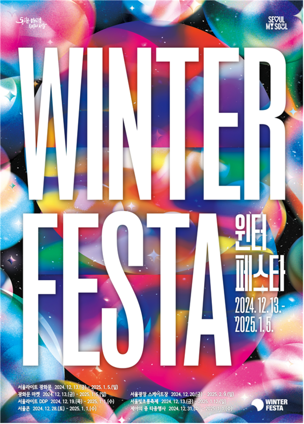 서울시는 올해 두 번째 맞는 <2024 서울윈터페스타>를 13일(금)부터 24일간 광화문~광화문광장~청계천~서울광장~DDP~보신각 6곳에서 시민참여 중심으로 계획대로 개최한다고 밝혔다. 특히 시민일상 유지, 혼란스러운 사회분위기에 대한 위로와 안심, 더 안전한 운영에 한번 더 초점을 맞춘다.
