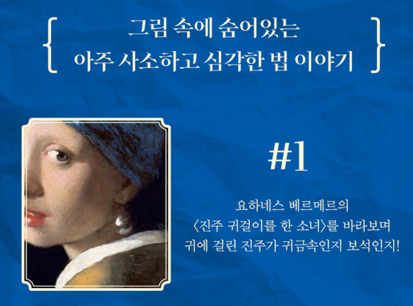 요하네스 베르메르의 대표작 〈진주 귀걸이를 한 소녀〉에서 소녀의 귀에 걸린 진주가 귀금속인지 보석인지를 법적으로 확인해 볼 수 있을까? 폴 카미유 기구의 〈빨래하는 여인〉, 빈센트 반 고흐의 〈빨래하는 여인들이 있는 아를의 랑글루아 다리〉에서처럼 냇가에서 빨래하는 것은 어떠한 법적 문제가 있을까? 훈민정음 해례본을 NFT로 발행할 때의 저작권 문제는? 아이돌 의상 콘셉트를 남들이 따라 하지 못하도록 법적으로 보호할 수 있을까? 부모가 이혼할 때 자녀가 스스로 누구와 살지를 결정할 수 있을까?