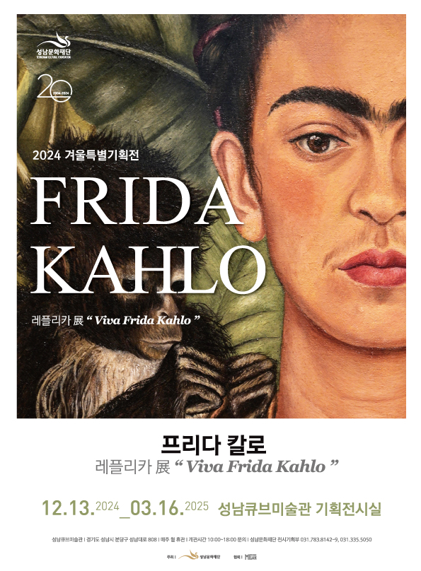 [아츠앤컬쳐] 고통과 열정, 그리고 삶의 의미를 찾는 그녀의 여정 <프리다 칼로 레플리카전 Viva Frida Kahlo>가 다가온다. 성남문화재단과 디자인민이 협력하여 기획한 <프리다 칼로 레플리카전>은 20세기 대표적인 여성화가 프리다 칼로가 겪었던 육체적, 정신적 고통과 절망을 극복하고 삶에 대한 강한 의지를 그림을 통해 예술작품으로 승화시킨 프리다 칼로의 삶을 조명한다. 멕시코 미술의 국보급 화가이며 내면의 고통을 예술로 승화시킨 20세기 대표 여성화가 ‘프리다 칼로’의 삶과 예술, 그리고 위로를 그녀의 작품을 통해 들여다본다.