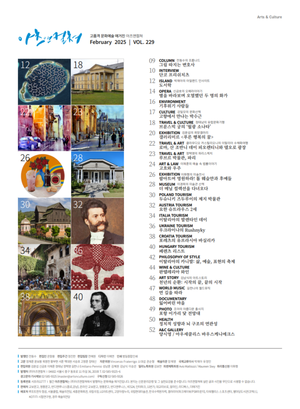 [아츠앤컬쳐] 관련기사 228호 목차 227호 목차 226호 목차 230호 목차 231호 목차 232호 목차 키워드 #아츠앤컬쳐 #artsnculture 아츠앤컬쳐 master@artsnculture.com 다른기사 보기 저작권자 © Arts & Culture 무단전재 및 재배포 금지 당신만 안 본 뉴스 비디오 아트의 아버지 백남준이 크로아티아를 만난 이유 예미 신간, 황인뢰슬갑소설 '장미 이야기' '파라마 파라가' 회고전: 와얀 쿤 아드냐나의 20년에 걸친 선의 탐구 팬텀 포 테너스 ‘마리 로랑생 회고전 : 무지개 위의 춤’ [연극열전10] 여덟 번째 작품 ‘마우스피스(Mouthpiece)’ 전쟁을 바라보는 또 다른 방식 비디오 아트의 아버지 백남준이 크로아티아를 만난 이유 댓글삭제 삭제한 댓글은 다시 복구할 수 없습니다. 그래도 삭제하시겠습니까? 비밀번호 닫기 기사 댓글 0 댓글 접기 로그인 후 이용 가능합니다. 댓글 내용입력 비회원 로그인 이름 비밀번호 댓글 내용입력 댓글쓰기 계정을 선택하시면 로그인·계정인증을 통해 댓글을 남기실 수 있습니다. 회원 로그인 비회원 글쓰기 이름 비밀번호 자동등록방지 로그인 옵션 창닫기 주요기사 'The Aesthetics of Possibility', SAMUEL DE SABOIA Fontane di Piazza San Pietro ‘마리 로랑생 회고전 : 무지개 위의 춤’ 연극 ‘오펀스(Orphans)’ 뮤직드라마 ‘불편한 편의점1’ [연극열전10] 여덟 번째 작품 ‘마우스피스(Mouthpiece)’
