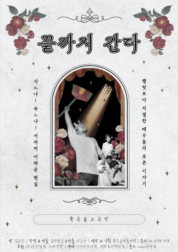 [아츠앤컬쳐] 연극 '끝까지 간다'는 한국관광협회에서 2023년과 2024년 2년 연속 웰컴대학로 연극에 선정된 작품으로 대학로에서 꼭 봐야 할 소극장 연극 작품이다. 그림책을 읽어주는 극단 “북(BOOK)극곰 예술여행” 배우들은 낮에는 북극곰, 저녁에는 비극 '햄릿'을 레파토리 극으로 운영하고 있다. 하지만 5년간 바뀌지 않는 레파토리에 싫증이 나는 배우 영현, 낭만으로 사는 배우 경구, 그리고 이제 막 대학을 졸업하고 대학로에 진출한 열정 넘치는 배우 준호. 가난한 무명의 세 배우가 이런 저런 이야기를 하며 공연을 준비한다.
