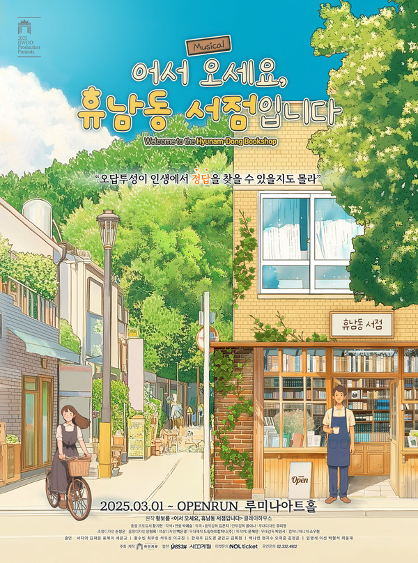[아츠앤컬쳐] 대학로 대표 힐링 뮤직드라마 <불편한 편의점>을 제작한 극단 지우의 뮤지컬 <어서 오세요, 휴남동 서점입니다가 8월 31일 두 번째 시즌을 마무리한다. <휴남동 서점>은 황보름 작가의 베스트셀러 소설을 원작으로 하는 공연으로, 2024년 CJ문화재단 스테이지업 선정작에 이름을 올리며 작품성과 대중성을 동시에 인정받은 바 있다.