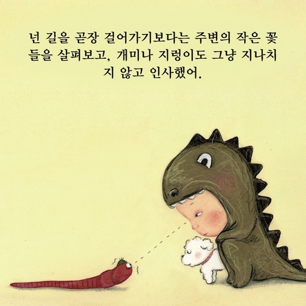 그림책 안에는 험난한 세상을 헤쳐 나갈 용기와 따뜻한 온기를 나누어주는 사랑이 담겨 있다. 그래서 오히려 어른을 위한 동화가 아닐까 생각될 정도로, 대부분의 그림책은 지친 어른들의 마음을 보듬어주는 무언가가 있다. 아이들은 아무것도 모르는 듯해도 신기할 정도로 그림책 세상을 이해한다. 하지만 어른이 되어 다시 읽어보는 그림책은 아마 또 다른 의미로 받아들여질 것이다.