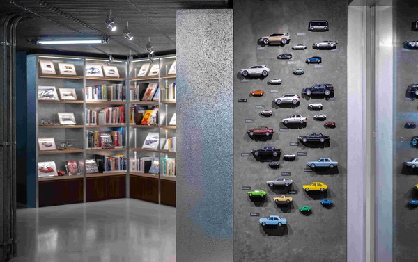 '오토라이브러리'는 책과 아이템을 함께 전시하여 몰입감 있는 경험을 전달하는 츠타야 서점 운영 노하우를 살려 헤리티지, 라이프스타일, 이노베이션 섹션으로 구성된 공간에 세심하게 큐레이션한 2,000여권의 도서와 200여종의 자동차 전문 아이템을 감각적으로 배치해두었다.