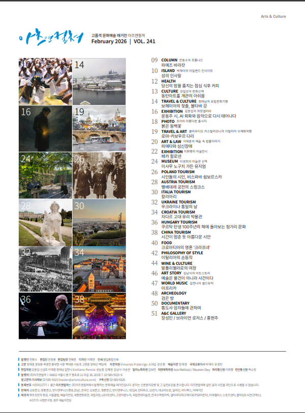 [아츠앤컬쳐] 관련기사 240호 목차 239호 목차 238호 목차 242호 목차 243호 목차 키워드 #아츠앤컬쳐 #artsnculture 아츠앤컬쳐 master@artsnculture.com 다른기사 보기 저작권자 © Arts & Culture 무단전재 및 재배포 금지 당신만 안 본 뉴스 비디오 아트의 아버지 백남준이 크로아티아를 만난 이유 예미 신간, 황인뢰슬갑소설 '장미 이야기' '파라마 파라가' 회고전: 와얀 쿤 아드냐나의 20년에 걸친 선의 탐구 팬텀 포 테너스 ‘마리 로랑생 회고전 : 무지개 위의 춤’ [연극열전10] 여덟 번째 작품 ‘마우스피스(Mouthpiece)’ 전쟁을 바라보는 또 다른 방식 비디오 아트의 아버지 백남준이 크로아티아를 만난 이유 댓글삭제 삭제한 댓글은 다시 복구할 수 없습니다. 그래도 삭제하시겠습니까? 비밀번호 닫기 기사 댓글 0 댓글 접기 로그인 후 이용 가능합니다. 댓글 내용입력 비회원 로그인 이름 비밀번호 댓글 내용입력 댓글쓰기 계정을 선택하시면 로그인·계정인증을 통해 댓글을 남기실 수 있습니다. 회원 로그인 비회원 글쓰기 이름 비밀번호 자동등록방지 로그인 옵션 창닫기 주요기사 'The Aesthetics of Possibility', SAMUEL DE SABOIA Fontane di Piazza San Pietro ‘마리 로랑생 회고전 : 무지개 위의 춤’ 연극 ‘오펀스(Orphans)’ 뮤직드라마 ‘불편한 편의점1’ [연극열전10] 여덟 번째 작품 ‘마우스피스(Mouthpiece)’