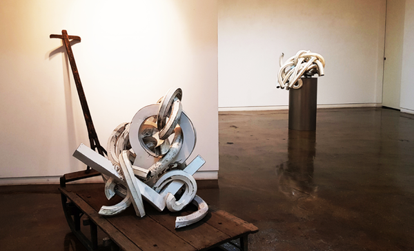 ‘돈오점수[頓悟漸修]’ 전시장의 조각작품들은 트위스트 되어지고 늘어진 긴 원형 또는 기다란 사각 원형들의 모형은 단순하게 뱀이나 용같이 보이기도 하며 남녀가 어우러진 듯 보이기도 한다. 그의 작품은 허심탄회한 심경에서 시작하여 천천히 우러나는 미학적 아름다움으로 관객을 조용히 몰입시키는 마력이 있다. 이는 추상작품이 주는 편안함과 멋으로 관객의 의식과 무의식을 사로잡는 매력이다. 기계가 유기체의 연장이듯 유기체가 일종의 기계이듯 역발상으로 만들어진 ‘절단들의 체계’도 보이며 작품을 감상하는 시간이나 인연이 그 늘어지고 끊어짐과 회전 안에서 느껴진다.
