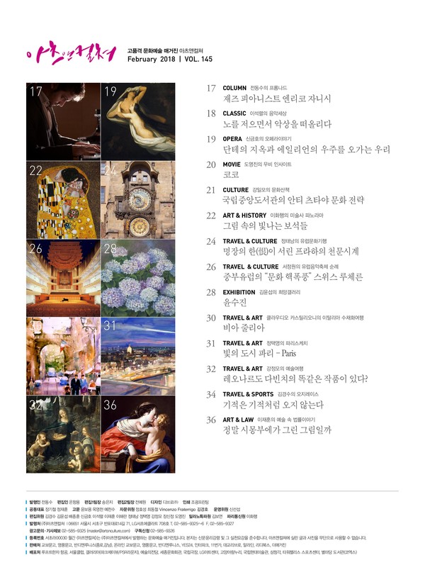 [아츠앤컬쳐] 관련기사 145호 표지 146호 목차 144호 표지 144호 목차 키워드 #아츠앤컬쳐 #artsnculture 아츠앤컬쳐 webmaster@artsnculture.com 다른기사 보기 저작권자 © Arts & Culture 무단전재 및 재배포 금지 당신만 안 본 뉴스 강재희 개인전 'Garden In Fall' 2025 예술가의집 & 꽃피는몸 프로젝트 공동기획 프로그램 2025 국립오페라단 정기공연 Ⅳ '트리스탄과 이졸데' ‘2026년 문예회관 특성화 지원 사업’ 확대 개편 예미 신간, '바다는 작은 물을 가리지 않는다' 강재희 개인전 'Garden In Fall' 댓글삭제 삭제한 댓글은 다시 복구할 수 없습니다. 그래도 삭제하시겠습니까? 비밀번호 닫기 기사 댓글 0 댓글 접기 로그인 후 이용 가능합니다. 댓글 내용입력 비회원 로그인 이름 비밀번호 댓글 내용입력 댓글쓰기 계정을 선택하시면 로그인·계정인증을 통해 댓글을 남기실 수 있습니다. 회원 로그인 비회원 글쓰기 이름 비밀번호 자동등록방지 로그인 옵션 창닫기 주요기사 예미 신간, '바다는 작은 물을 가리지 않는다' ‘2026년 문예회관 특성화 지원 사업’ 확대 개편 2025 국립오페라단 정기공연 Ⅳ '트리스탄과 이졸데' 강재희 개인전 'Garden In Fall' 2025 예술가의집 & 꽃피는몸 프로젝트 공동기획 프로그램 호두까기 인형: 해설이 있는 명품 발레
