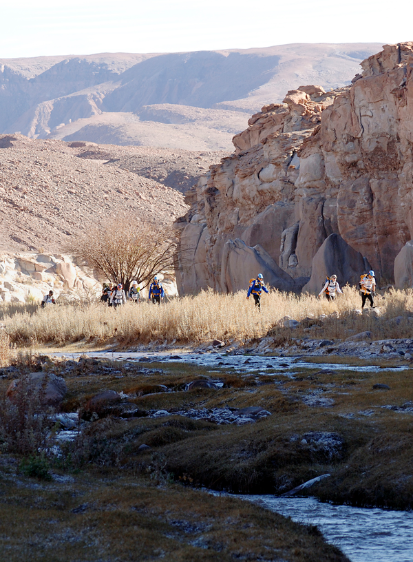보통 사막 레이스 첫날은 워밍업 차원에서 살살 하기 마련이다. 그런데 이번 대회는 지형의 생김새 그대로 첫날부터 무지막지했다. 레이스 거리 36km에 4천m의 고산지대와 급경사의 협곡을 따라 만년설이 녹아 흐르는 수십 개의 강물을 4.5km나 지나가야 하는 살인적인 코스였다.