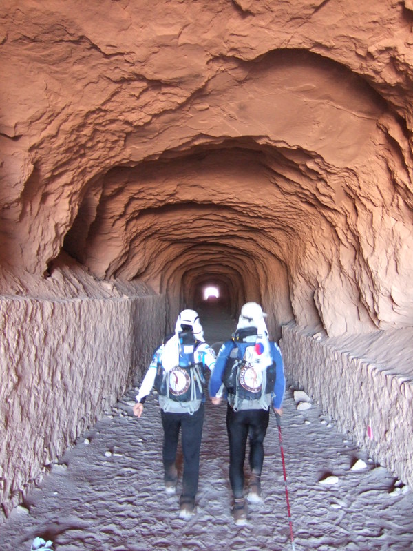 깨달음에 관한 첫 번째 기억은 2006년 7월, 다시 용술 씨의 손을 잡고 간 남미 칠레의 아타카마 사막으로 거슬러 올라간다. 지구상에서 별이 가장 아름답게 빛나서 전 세계 천체물리학자들의 사랑을 한 몸에 받는 곳, 붉은색 흙과 수만 년 전 지구의 지각대변동으로 융기된 지형이 만들어낸 기괴한 분위기가 마치 사람이 살 수 없는 낯선 행성에 온 듯한 착각을 불러일으키는 곳, 게다가 한국과 지구 정반대 쪽 칠레의 7월은 건조한 대기와 살을 에는 한겨울 추위로 세계 각국에서 모여든 134명의 출전 선수들을 몸서리치게 했다. 사하라사막이 우아하고 품위 있는 아름다운 왕후라면 고비사막은 힘든 노동에 손발은 거칠지만 순박한 미소를 지닌 시골 아낙네 같은 곳이었다. 하지만 아타카마사막은 날카로운 검을 가슴에 품은 서늘한 눈매의 검객 같은 느낌을 줬다. 5박7일 간의 260km 대장정은 하늘과 맞닿은 해발 4,288m에 위치한 마추카 마을에서 시작됐다.