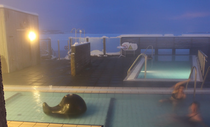 바다를 보면서 한가로이 수영을 즐길 수 있는 곳으로 절벽 바로 옆에 있는 온천은 아름다운 풍경과 함께 힐링하는 기억으로 남을 것이다. 달비크에서 고래투어를 하면 해안도로를 따라 1시간 거리에 있고, 아쿠레이리에서는 약 2시간정도가 소요된다.