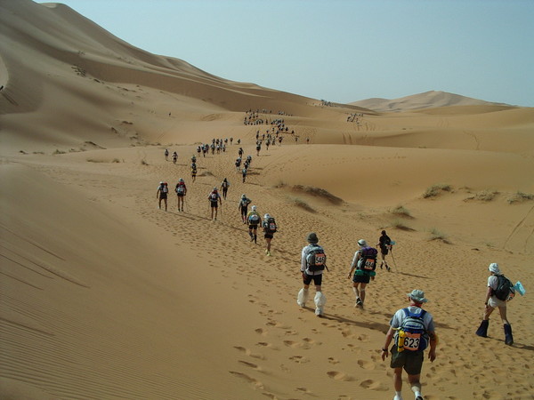 하지만 이건 전조에 불과했다. 주로에서 다시 온밤을 맞았다. 밤 1시를 넘어설 무렵 쌀쌀한 기운이 돌더니 모래바람이 일기 시작했다. 레이스 출발 전에 불어대던 돌풍과는 비교할 바가 아니었다. 땅바닥을 훑으며 몰아치는 광풍에 주로 표시를 위해 꽂아둔 푯대가 순식간에 뽑혀 날아갔다. 몸을 지탱하기조차 힘들었다. 몸을 때리는 흙먼지가 피부 속으로 파고들었다. 바닥에 주저앉아 웅크린 채 바람을 피해 보았지만 멈출 기미는 보이지 않았다. 질긴 놈이 이긴다. 벗어날 수 없다면 버텨야 했다. 한 시간 넘는 사투 끝에 모래폭풍의 핵이 중심이동을 하며 서서히 비껴갔다. 이 순간 나를 지탱해준 힘은 처음 사하라로 향했던 그 도전과 열정을 늘 처음처럼 마음에 새겼기에 가능했나 보다.