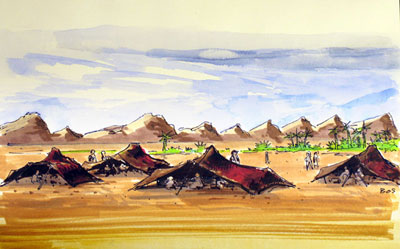 농로를 따라 달리던 중 아랫도리가 조금씩 근질거렸다. 무심코 다리 쪽을 내려다보니 양 허벅지와 종아리에 수백 마리의 모기떼가 우글거렸다. 녀석들은 어깨와 팔뚝에 목덜미까지 들러붙어 무언가에 열중했다. 펄쩍펄쩍 뛰며 온 몸을 털었지만 대롱을 박고 피를 빠는 놈들은 쉽게 포기하지 않았다. 죽기를 각오하고 달려드는 모기떼에 놀라 레이스에 가속이 붙었다. 모자를 벗어 종아리와 허벅지를 연신 내리치고 휘저으며 달아났다. 녀석들도 맹공을 퍼부으며 거침없이 달려들었다. 타클라마칸사막에서 흡혈파리에게 피를 빨릴 걱정을 했던 것은 기우였지만, 모기라는 복병을 만나 혼쭐이 났다.