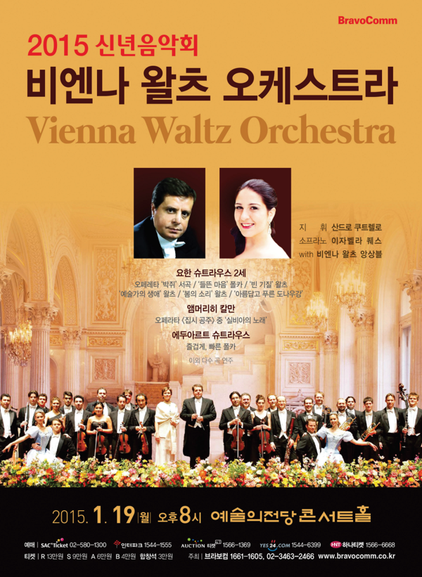 [아츠앤컬쳐] 최고 수준의 연주자들과 월드 발레 스타들이 펼치는 2015 비엔나로 떠나는 왈츠 여행이 펼쳐진다. 산드로 쿠투렐로에 의해 설립된 비엔나 오케스트라는 세계적으로 유명한 비엔나 음악 단체 중 하나로 최고수준의 연주자들과 국제 발레스타들의 비엔나 전통 왈츠, 포크댄스 그리고 유럽 최고의 오페라 가수가 선보이는 오페레타 아리아 공연을 동시에 즐길 수 있는 오케스트라이다.