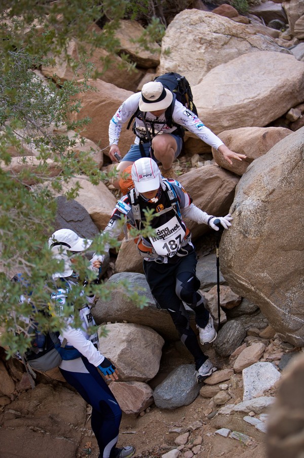 협곡 주변은 오랜 세월의 풍화작용이 빚어진 기암괴석들이 파노라마처럼 펼쳐졌다. 경기가 시작되자 선수들은 괴성과 함께 날 선 돌들이 가득한 급경사의 내리막길을 따라 미끄러지며 내려갔다. 조금만 발을 헛디뎌도 대형사고로 이어질 수 있지만 선수들은 아랑곳하지 않았다.