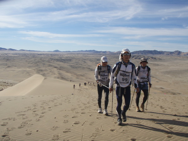 레이스 4일째, 나미비아 북서쪽 할렌버그Haalenberg까지 다다랐다. 드디어 나미브사막을 가로질러 대서양 해골해안Skeleton Coast으로 향하는 100km 무박 2일의 롱데이 코스에 섰다. 지구상 가장 아름답고 오래된 사막, 일 년 중 300일 이상 태양이 불타는 곳, 남아프리카공화국과 앙골라, 보츠와나에 둘러싸인 나미비아의 가장 깊숙한 곳에 위치한 사막, 선수들은 부시맨의 고향인 나미브사막으로 들어선다는 기대로 흥분을 감추지 못했다. 피부를 녹여 내릴 기세로 이글거리는 태양, 갑자기 찾아든 낯선 이방인들을 경계하듯 나미브사막은 바람마저 숨을 죽인 채 선수들을 예의주시하고 있었다.