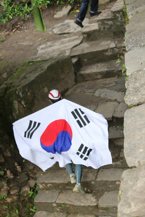 지구상 가장 아름다운 신비의 수도원, 결승선이 있는 호랑이 둥지 The Tiger’s Nest monastery가 손에 잡힐 듯 시야에 들어왔다. 격한 박동에 심장이 터질 것 같았지만 경이로움과 전율이 먼저 온몸을 휘감았다. ‘이제 내 몸에 남은 한 줌의 에너지까지 모두 태워야겠다.’ 수도원 앞마당으로 다가서는 마지막 수백 개의 계단 앞에 선 나는 가쁜 호흡을 몰아쉬며 배낭 속 대형 태극기를 펼쳐 들었다.