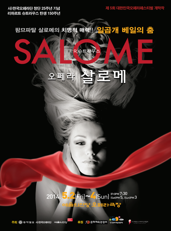 1989년 창단 이후 항상 새롭고 신선한 기획으로 한국의 오페라 팬들에게 감동을 주고 오페라의 대중화를 위해 노력해 온 사단법인 한국오페라단이 창단 25주년과 리하르트 슈트라우스 탄생 150주년을 기념하여, 제5회 대한민국오페라페스티벌 개막작으로 슈트라우스의 대표 오페라 <살로메>를 2014년 5월 2일(금)~4일(일)까지 예술의전당 오페라극장에서 공연한다.