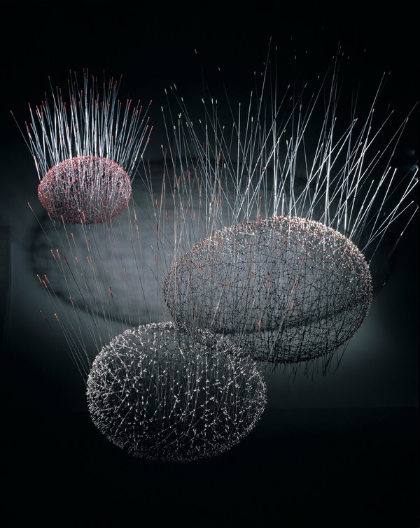 텅 빈 공간, 수많은 얇은 철사들의 이어짐으로 형태가 만들어진다. 인간과 인간이 만나고 이어져 문명이 만들어진다. 그 ‘이어짐’들은 다양한 유기적인 형상들을 만들어내지만, 그 안은 텅 비어있다. 비어있기에 안과 밖은 통한다. 빈 공간을 두어 안과 밖이 소통할 수 있게 만들어진 한국의 전통 가옥과 전통 의상이 담고 있는 ‘통함’의 철학과 흡사하다. 삶에 대한 또 사람의 관계성에 대한 그의 생각의 중심에는 ‘비움–공(空)–무(蕪)’가 있지 않을까 한다.