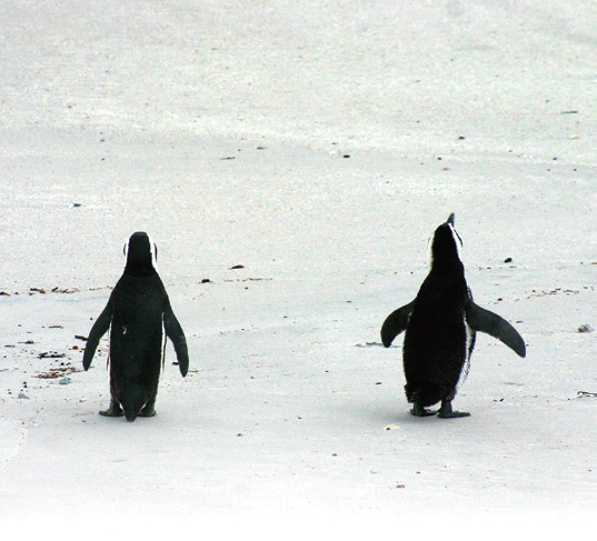 [아츠앤컬쳐] TV에서 남극에 사는 펭귄만 보다가 아프리카 펭귄을 만난 사람들은 한결같이 놀라움을 감추지 못한다. 남아공의 펭귄은 키가 50cm밖에 되지 않는 귀여운 모습을 하고 있기 때문이다. 당나귀처럼 울어서 ‘자카스펭귄’이란 별명을 가지고 있는 케이프펭귄은 한때 기름의 원료로 사용되어 대량 살육되기도 하였다. 최적 비료 채굴 때문에 수많은 둥지가 파괴되었고 원유수출 등 바다의 오염 때문에 대륙에서 사라져 가고 있다.