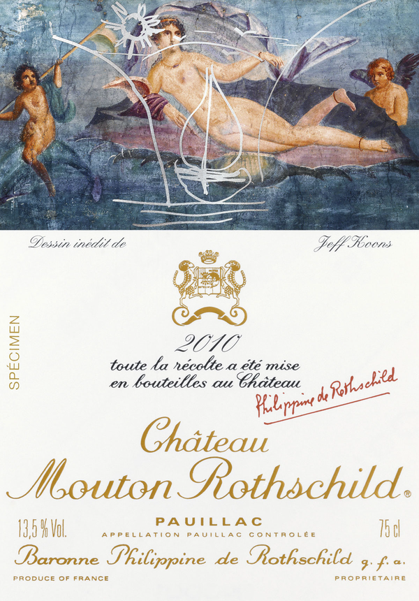 이번 무통 제작에 참여한 제프 쿤스는 이탈리아 폼페이의 프레스코 벽화 중 ‘비너스의 탄생’에 바탕을 깔고 그 위에 가는 선으로 돛단배와 태양 등을 그려넣은 라벨을 디자인했습니다. 파격적인 작품을 양산해온 제프 쿤스의 그동안의 스타일을 감안한다면 이번 무통의 레이블은 아주 점잖고 다소 전통적이기까지 한 느낌의 덜 파격적인(?) 작품이 아닌가 싶습니다. 샤또 무통 로칠드의 오랜 전통과 명성에 미술계의 악동인 제프 쿤스조차도 경의를 표하고 싶었던 것일까요?