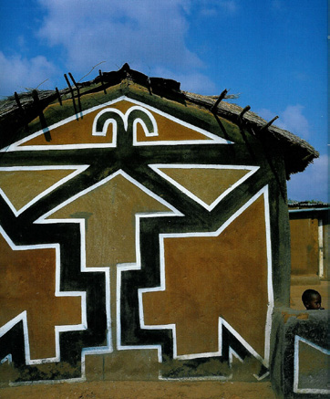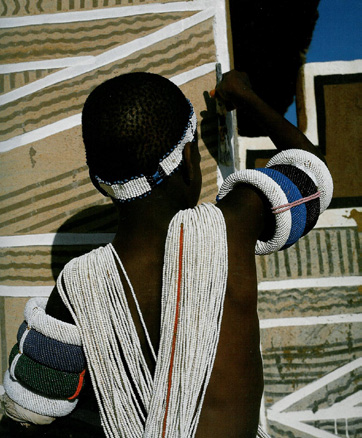 소년들이 마을에서 떨어진 외딴곳에 가서 그들의 전통 풍습을 익히고 성인식을 치르고 결속력을 다지고 돌아올 때쯤 마을의 여인들은 그들이 사는 집 외벽에 아름다운 빛깔들로 색을 칠하고 그림을 그리는데 꽃, 뱀, 새 그리고 작은 동물을 넣은 기하학적인 문양을 주로 그리고 요즘은 알파벳과 숫자, 빌딩, 비행기 등도 그린다.