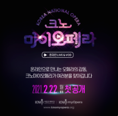 국립오페라단(단장 박형식)은 2.22(월) 온라인 동영상 서비스 크노마이오페라 KNOmyOpera를 새롭게 선보인다. 2020년 코로나19의 확산에 따른 전세계적 위기 상황 속에서도 관객과의 접점을 찾기 위해 끊임없이 노력해온 국립오페라단은 온라인 동영상 서비스인 크노마이오페라 온라인 페이지를 새롭게 구축하고 실시간 오페라 생중계는 물론 지난 공연을 VOD로 감상할 수 있는 시스템을 도입, 오페라 극장이라는 한정된 오프라인 공간을 넘어 시공을 초월하는 온라인이라는 열린 공간으로 무대를 넓힘으로써 2021년 다시 한번 오페라의 새로운 확장을 도모한다.