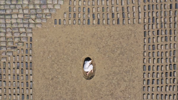 이번 프로젝트에서는 육지의 기와가 바다의 물을 만났다. 기와는 ‘ㄷ’자 구조로 설치되었고 작가는 ‘ㄷ’자형 가운데 둥글게 모래를 파고 어머니의 자궁 속에 든 태아처럼 몸을 웅크려 퍼포먼스를 했다. 이것은 사람이 태어나는 자궁과 태자리로 들어가 죽음을 맞이하는 순환의 기점을 동시에 이야기하며, 만물의 시작과 끝은 순환의 굴레 속에서 같다는 것을 암시한다.