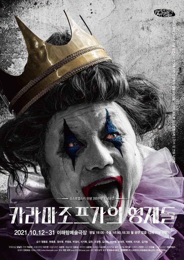 연극 <카르마조프가의 형제들>은 인문학적 사유에 의한 깊이 있는 성찰을 바탕으로 오늘날 우리 인간 존재의 실존적 의미에 대해 관객에게 질문을 던지고자 한다. 지난 8월 23일에 인터파크에 티켓을 오픈하여 예매순위 1위를 차지했었던 연극 <카라마조프가의 형제들>은 1, 2부로 나누어져 3시간씩 총 6시간동안 공연되며, 1, 2부를 개별(VIP 7만원, R 5만원)로 즐기거나, 패키지 티켓(VIP 9만원, R 6.5만원)으로 두 작품을 한번에 예약할 수 있다.