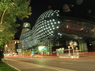 On the “Kunsthaus Graz” (Art Hall) in the city of Graz is a contemporary art museum inside of a bizarre and beautiful structure better known as "The Friendly Alien" of modern design. It offers a constantly changing showcase of installations, film, new media and other forms of contemporary art.