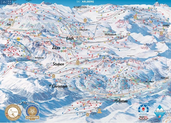 Here one sample of one of the oldest and still famous Ski area in Austria at Arlberg with 88 Lifts, 302 km slops between 1,300 m and 2,811 m with state of the art lifts.