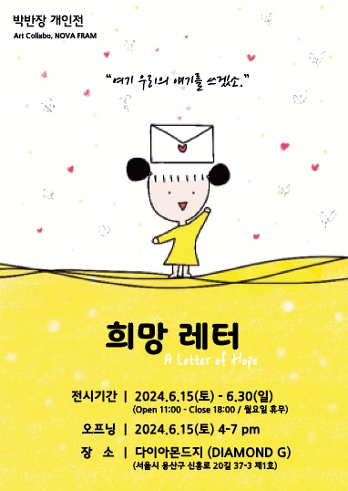 [아츠앤컬쳐] 문화 예술 복합공간 다이아몬드지에서 6월 15일부터 30일까지 신진 작가 박반장의 희망 전시가 이어진다.