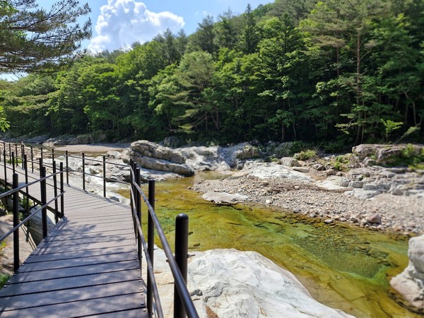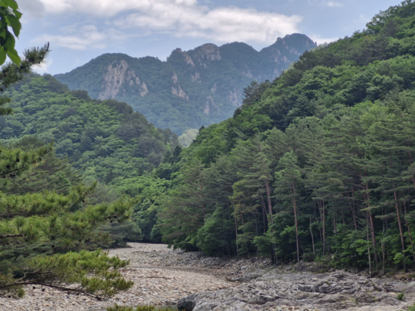 백담사와 영시암 사이 백담계곡은 숲과 계곡 사이로 평탄한 길이 잘 닦여 있다. 숲길도 아름답고 계곡의 물소리가 시원하여 조선의 선비가 아니어도 가히 숨어들어 살 만하다.