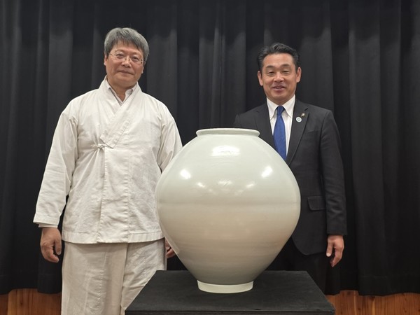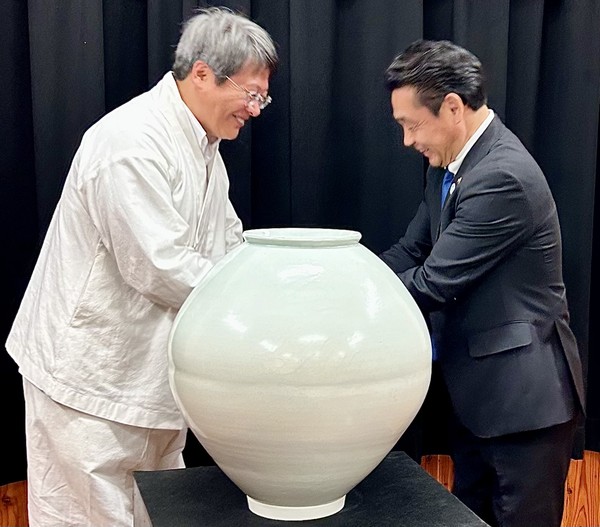 [아츠앤컬쳐] 지난 10월 22일, 도쿄로부터 140km 떨어진 야마나시현 호쿠토시시립자료박물관에서 양구 작가의 달항아리 기증식이 열렸다. 이번 기증식에는 카미무라 에이지 호쿠토시 시장이 참석해서 달항아리를 직접 기증받았다.