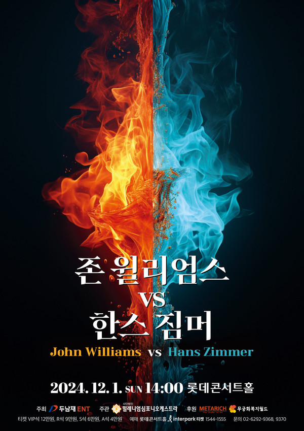 [아츠앤컬쳐] <존 윌리엄스 VS 한스 짐머> 공연이 2024년 12월 1일 일요일 오후 2시 롯데콘서트홀에서 두남재엔터테인먼트 주식회사의 주최로 열린다.